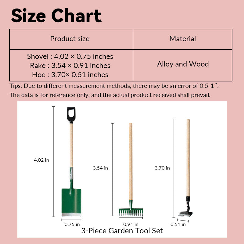 3-Piece Garden Tool Set – 1:12 Scale Dollhouse Accessories