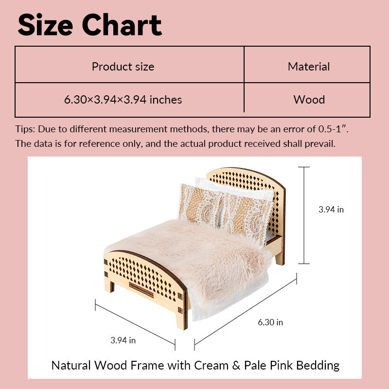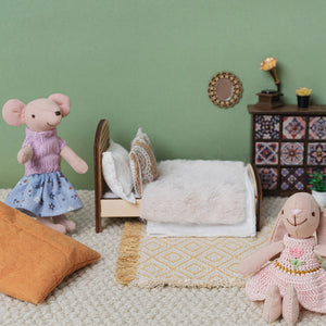 Carved Wooden Bed with Bedding Set – 1:12 Scale Dollhouse Furniture