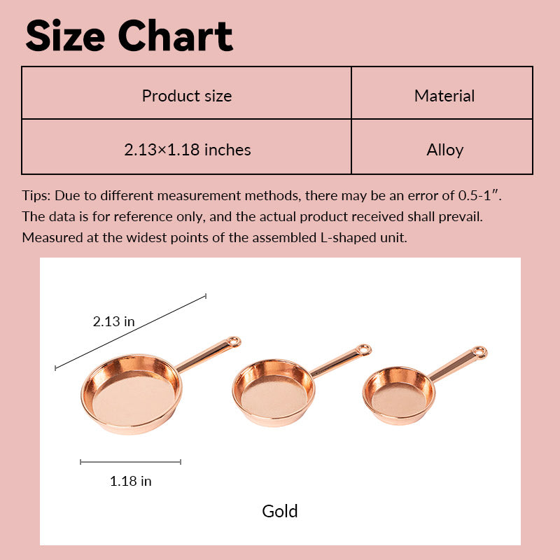 Gold Frying Pan Set (Large, Medium & Small) – 1:12 Scale Dollhouse Kitchen Accessories