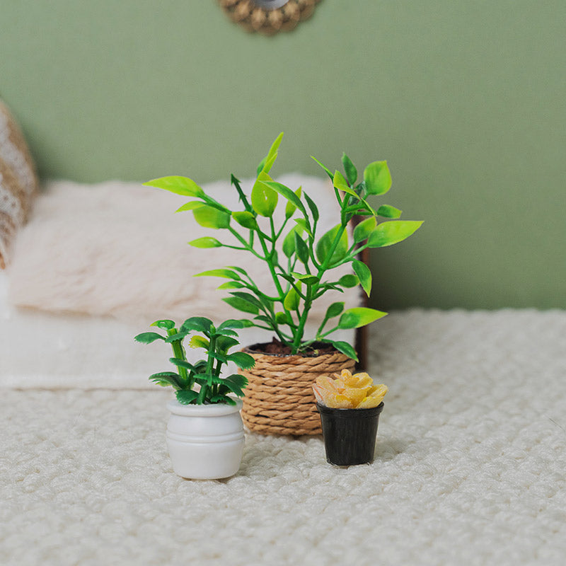 Potted Plant Set (3 pcs) – 1:12 Scale Dollhouse Decor