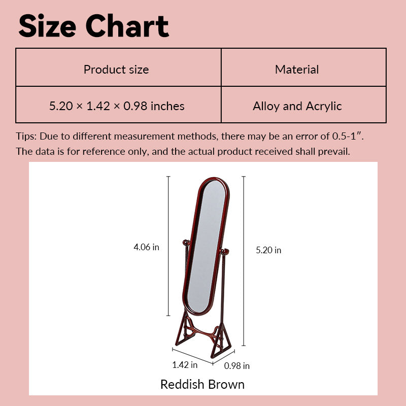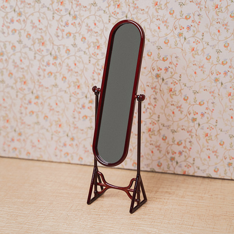 Red-Brown Vintage Cheval Mirror – 1:12 Scale Dollhouse Furniture
