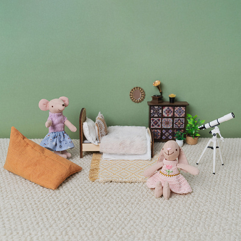 🛏️ Includes mini bed, nightstand, telescope & moonlight backdrop
