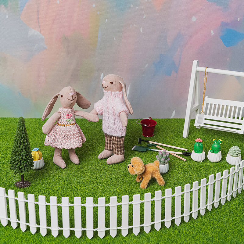 A springtime miniature scene where Clara, Sophie, and the little ones plant a tiny tree in the yard. A gentle reminder that love, like seeds, needs sunlight and patience to grow tall.