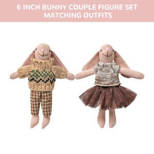 3. 6 Inch Bunny Couple Figure Set Matching Outfits