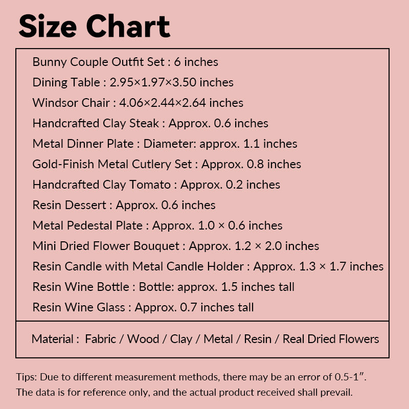 Valentine’s Candlelight Dinner Accessories Set, Valentine’s Candlelight Dinner Special Edition, 6 Inch Bunny Couple Figure Set Matching Outfits, Dining Table & Chair Set (Walnut Finish) |