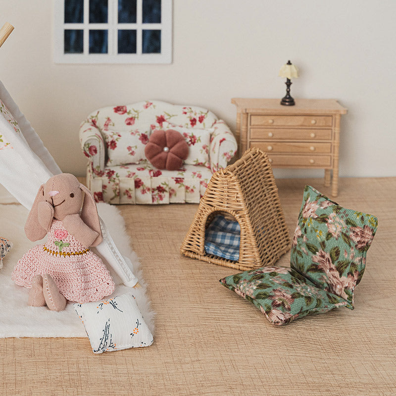 Wicker Dog Bed – 1:12 Scale Dollhouse Pet Furniture