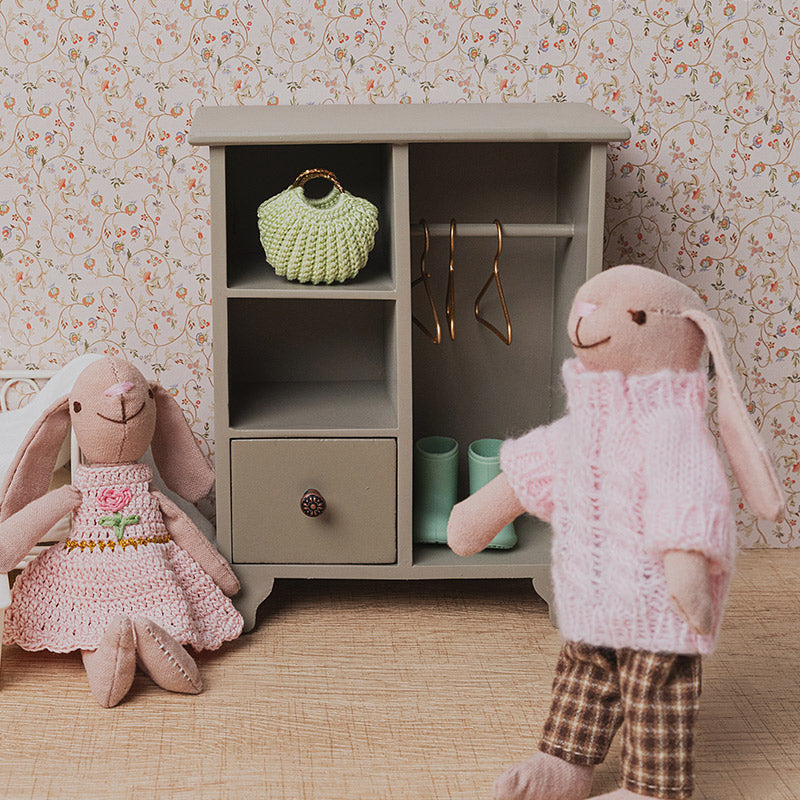 Wooden Wardrobe with 3 Hangers – 1:12 Scale Dollhouse Furniture
